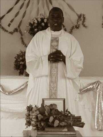 » Father delivering homily at Veronica's funeral mass