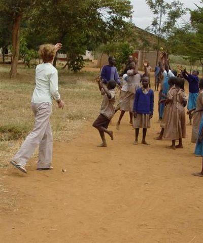 The children and I had enormous fun playing catch. Kenyan children are very, very shy and I had a difficult time getting them to talk with me. A little rubber ball I'd tucked in a suitcase pocket broke the ice. Initially I tossed the ball out to them, expecting them to keep it and play. But the one with the ball shouted "Mwende!" (my Kenyan name), and threw it back to me. For the next hour we walked through the fields tossing it back and forth, the children roiling in laughter and begging "Mwende...Katherine...throw it here!"
