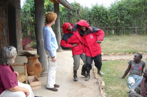Both these young men (Bosco and Thomas) are managers at the wildlife sanctuary begun by Jode Garbe. We thought we'd have a big dilemma trying to choose which one to award a jacket to. But I dug in my bag and found TWO new jackets, so they each received one. (I swear, something like the miracle of loaves and fishes happens regularly in the depths of that suitcase!) The jacket was the first new ANYTHING that either of these fellows had ever received.