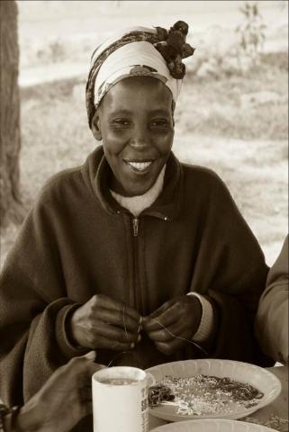 Veronica, working on beading while awaiting help at the Upendo Village Clinic. I have never seen such a beautiful, intriguing smile and tried to capture it on film.