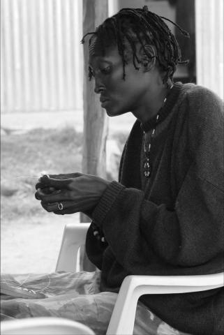 Ann was a streetwalker--a prostitute. Two years ago business was slow & Ann saw the women's group taking a break from work & eating lunch in the courtyard at Upendo. (They are served a high-protein porridge.) She was hungry and a bit nosey, so she investigated. She stayed to eat and make jewelry.